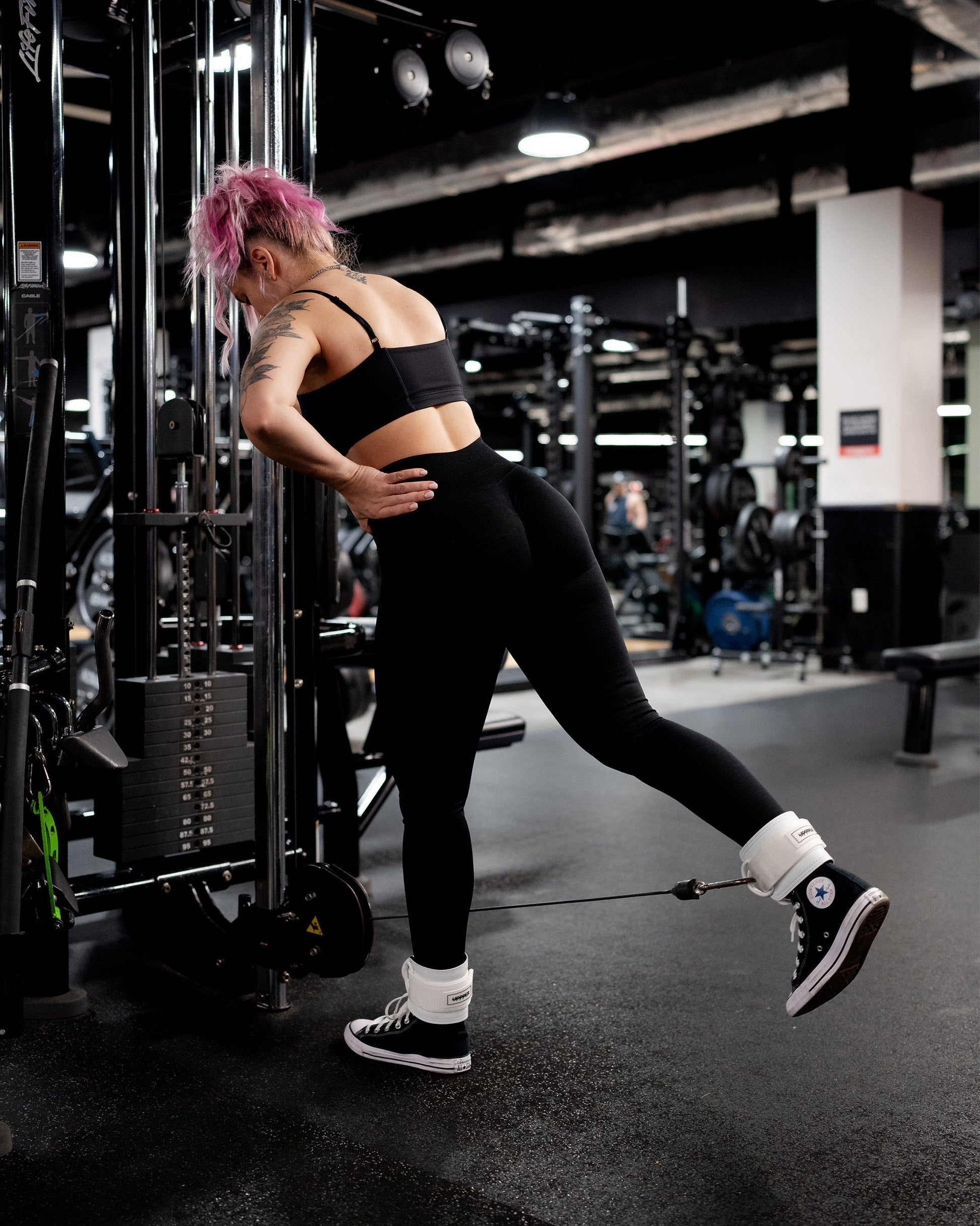 Einige der besten Kabel-Beinübungen, die du mit den UPPPER Knöchelriemen machen kannst, sind Kabel-Kickbacks, Kabel-Seitenbeinanhebungen, stehende Hüftabduktionen, Bein- oder Beinbeugungen und Kabel-Frontbeinanhebungen.
