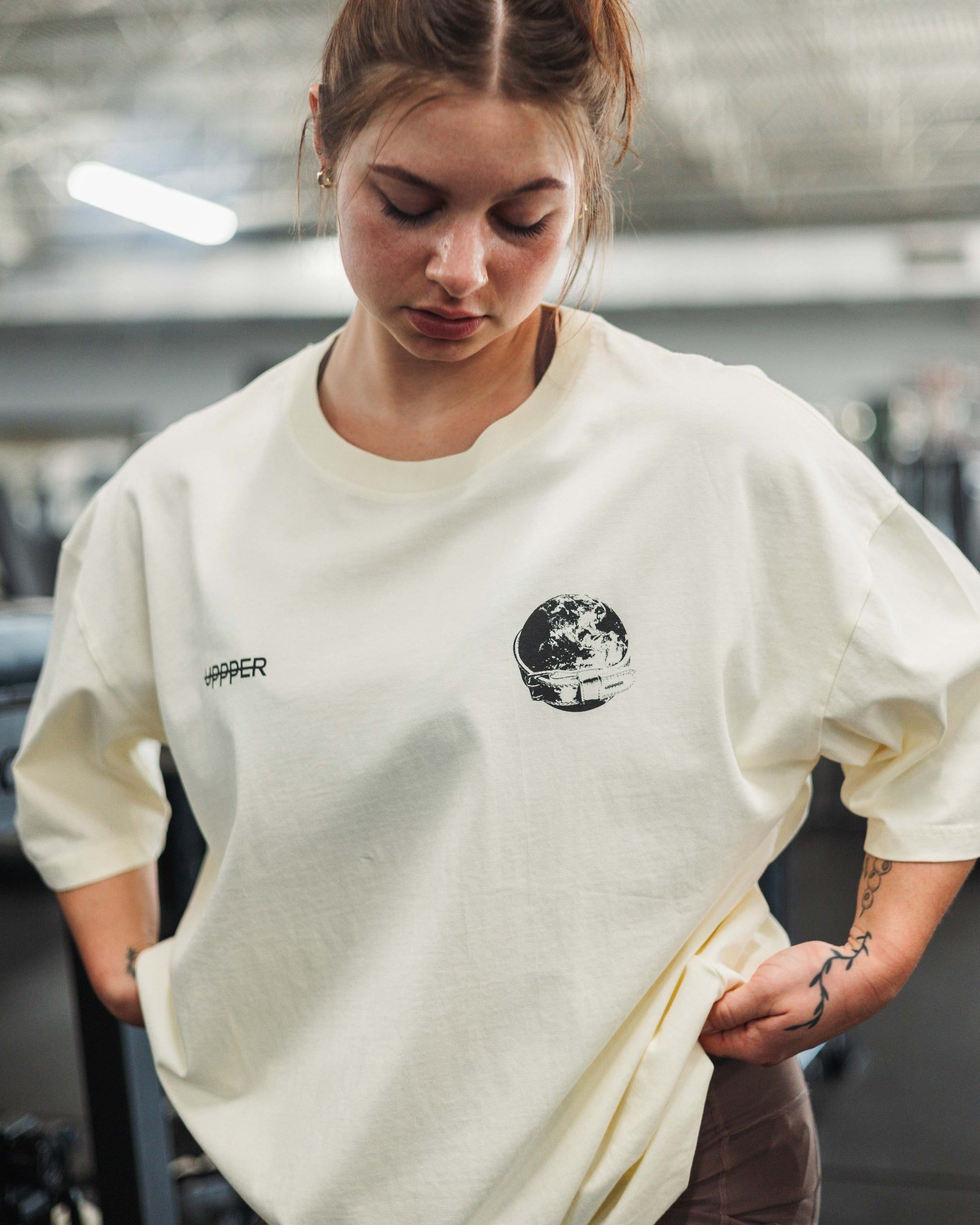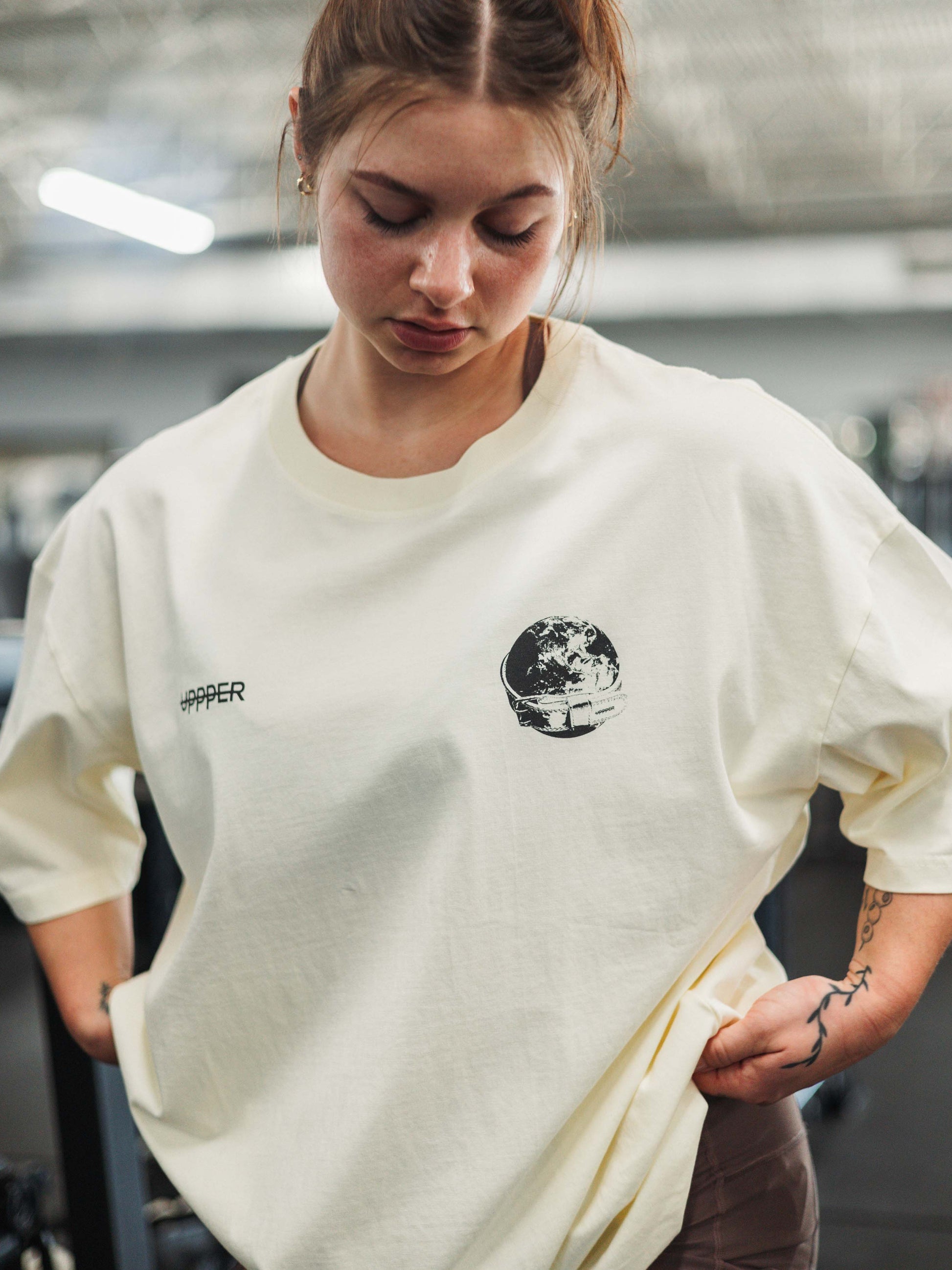 UPPPER T-Shirts sind „heavyweight“, was sich auf einen dickeren, dichter gewebten Stoff bezieht, der typischerweise etwa 6 oz oder mehr pro Quadratyard wiegt. Heavyweight T-Shirts sind langlebiger, bieten einen strukturierten Look und sind weniger anfällig für Faltenbildung oder Dehnung im Laufe der Zeit.