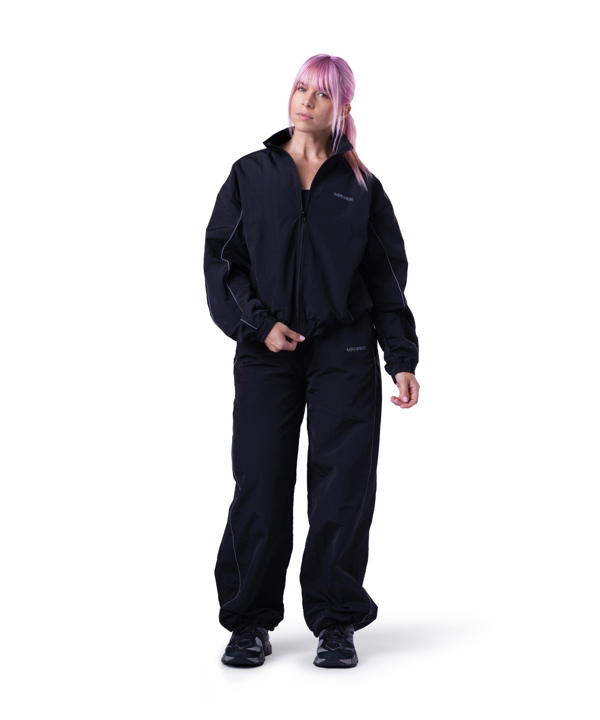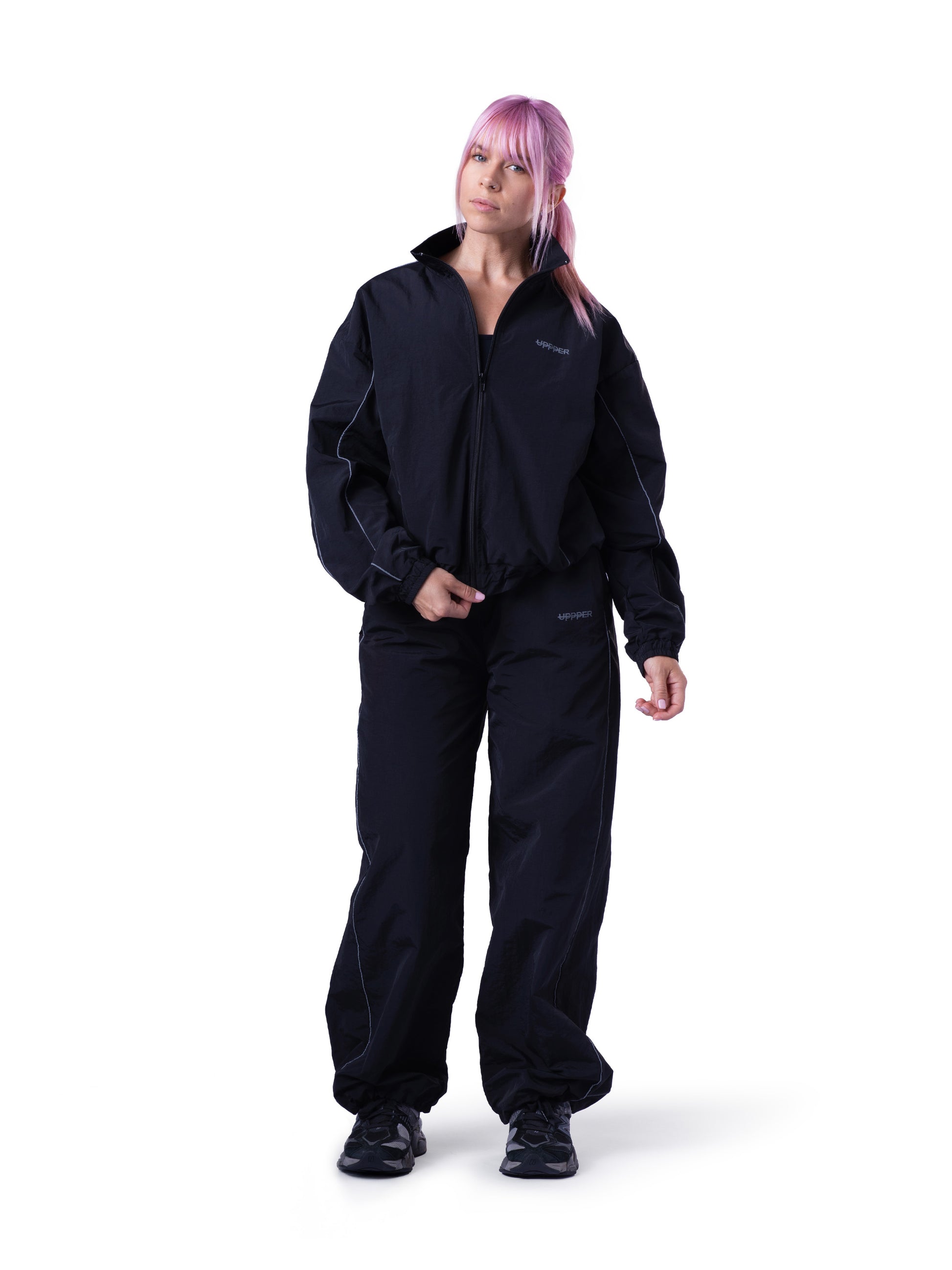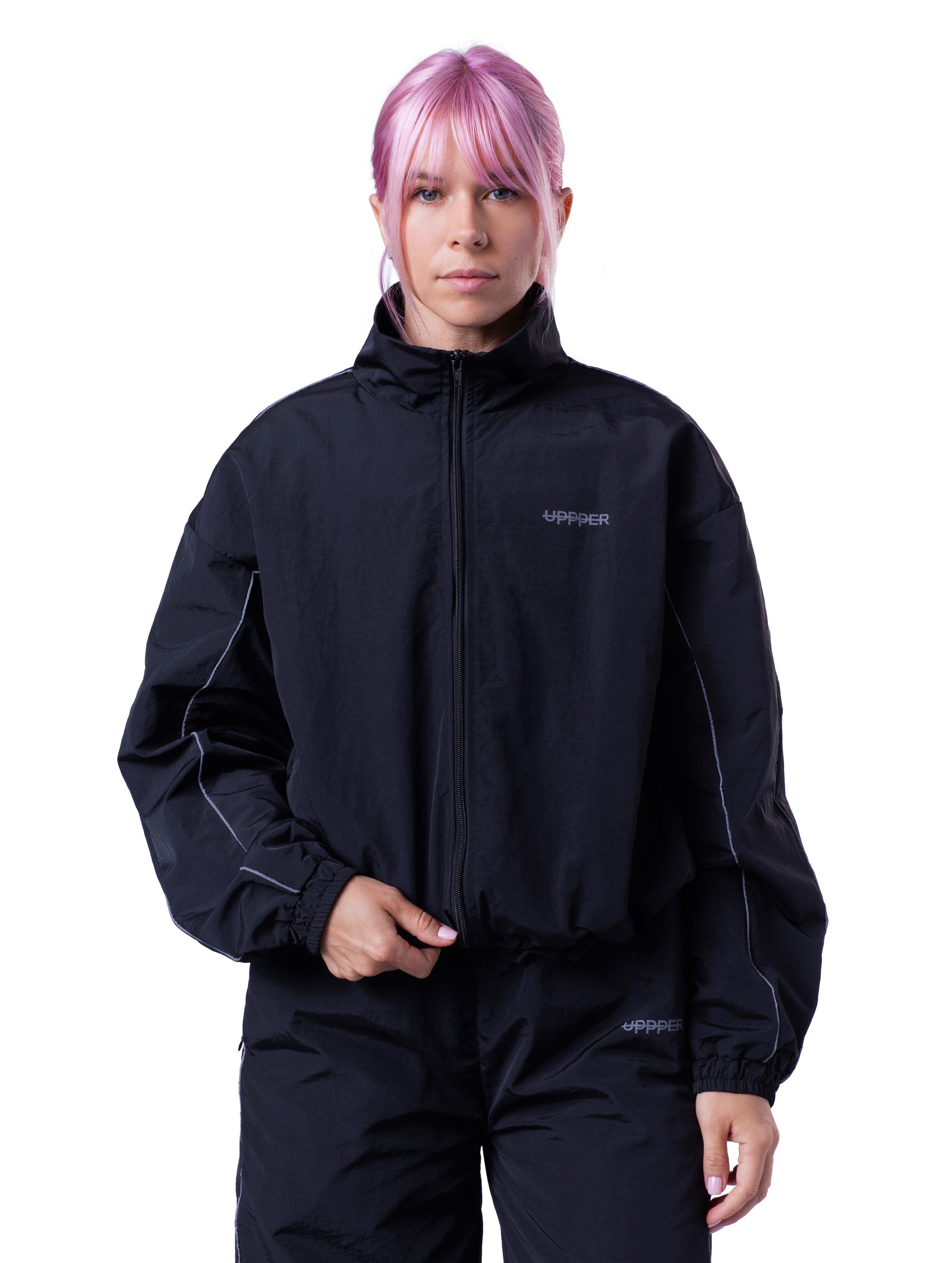 Die Trackjacke von UPPPER für Damen ist für den Dauereinsatz gemacht. Erhältlich in Schwarz, Blau, Pink und Beige, passt diese atmungsaktive Trackjacke perfekt zu unseren passenden Trackpants.